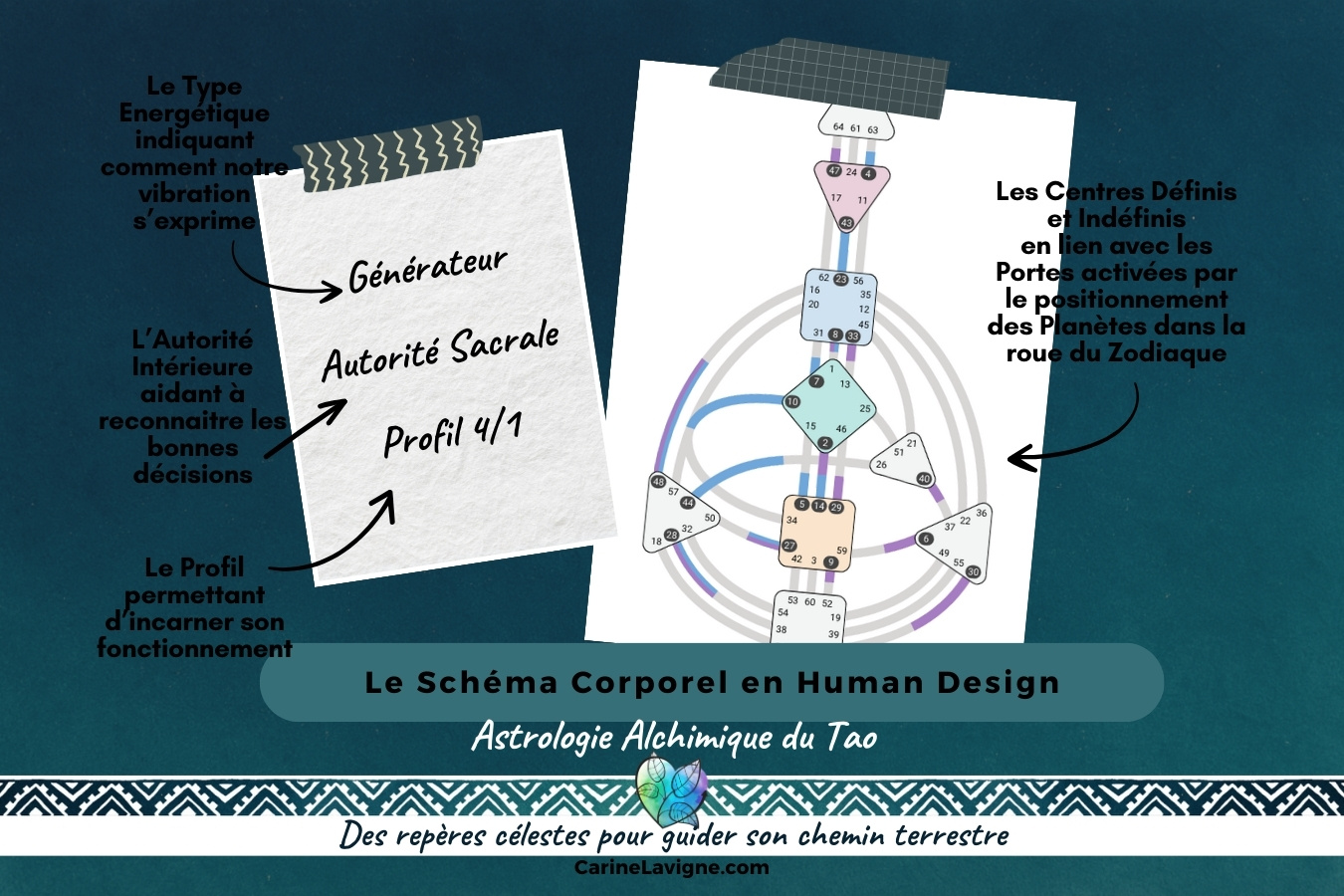 Comme évoqué dans mon exemple, il faut souligner que la construction de votre BodyGraph ou schéma corporel, repose sur une combinaison unique de connaissances astrologiques, énergétiques et spirituelles.