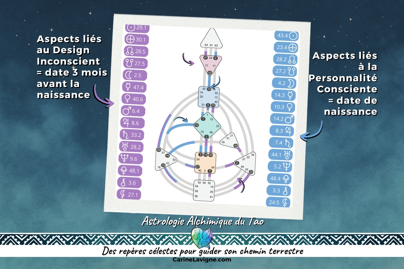 Néanmoins, on parle peu des signes astrologiques en Design Humain, mais principalement de ces 64 portes qui sont directement liées aux 64 hexagrammes du I Ching, un ancien système de sagesse chinoise.