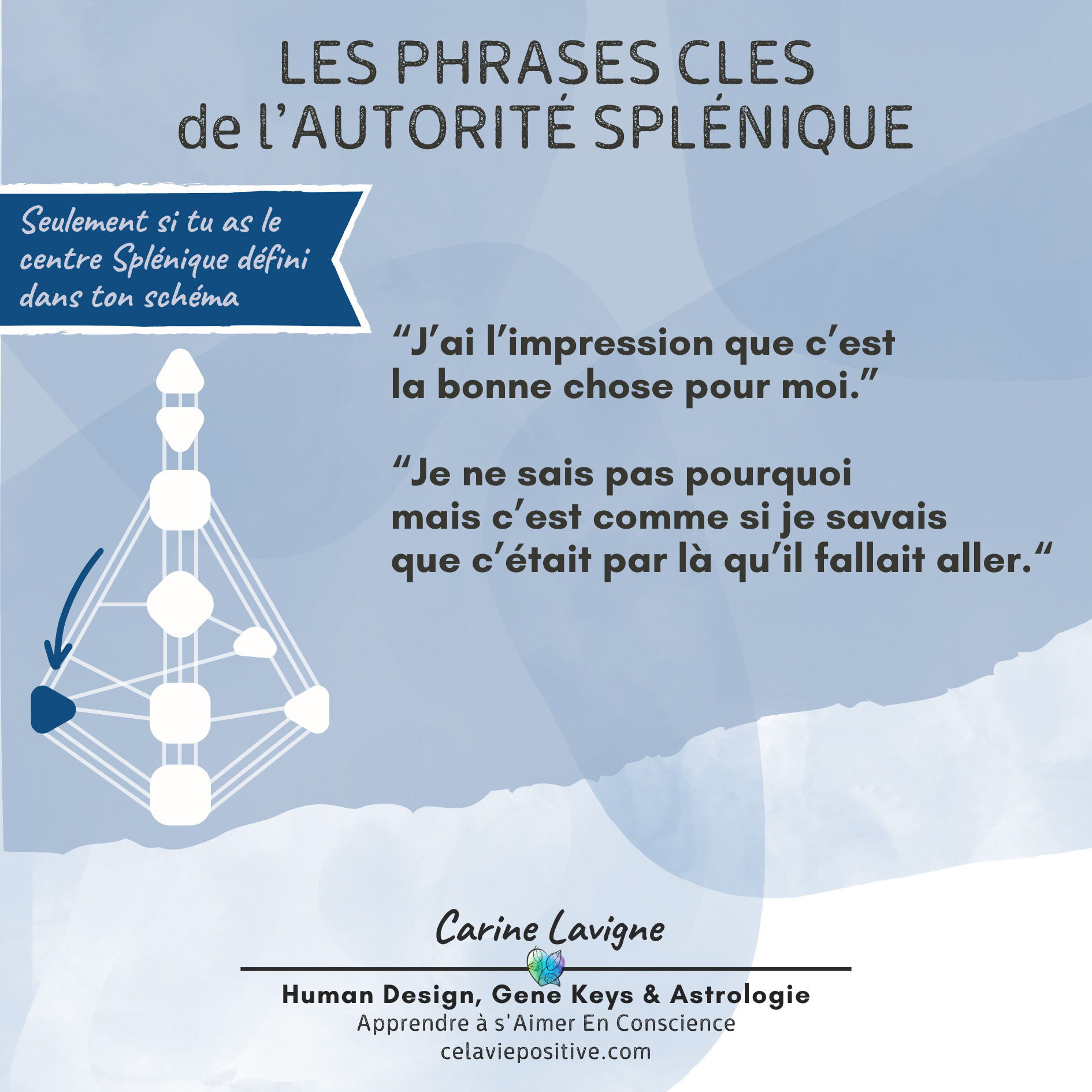 Le défi, avec cette autorité, est de faire confiance à ce signal discret plutôt que de le remettre en question par la logique ou par la peur. De ne plus hésiter face à ces éclairs intuitifs. L’intuition splénique est là pour vous protéger et vous guider vers ce qui soutient votre bien-être. Donc cessez de chercher à comprendre le pourquoi du comment et faites confiance à cette information tellement soudaine, mais qui éclaire tout.