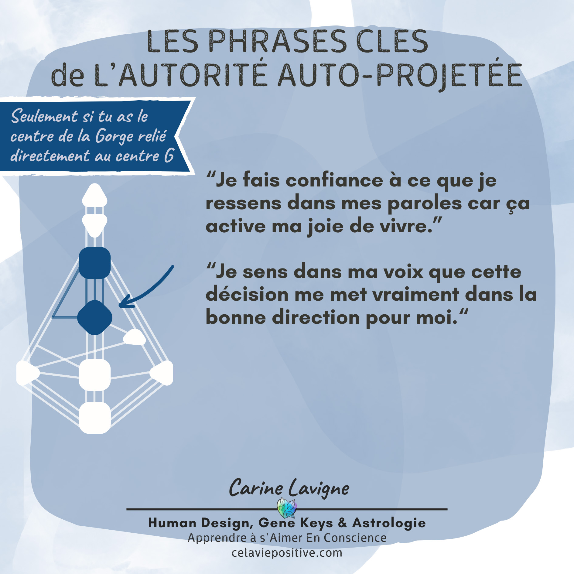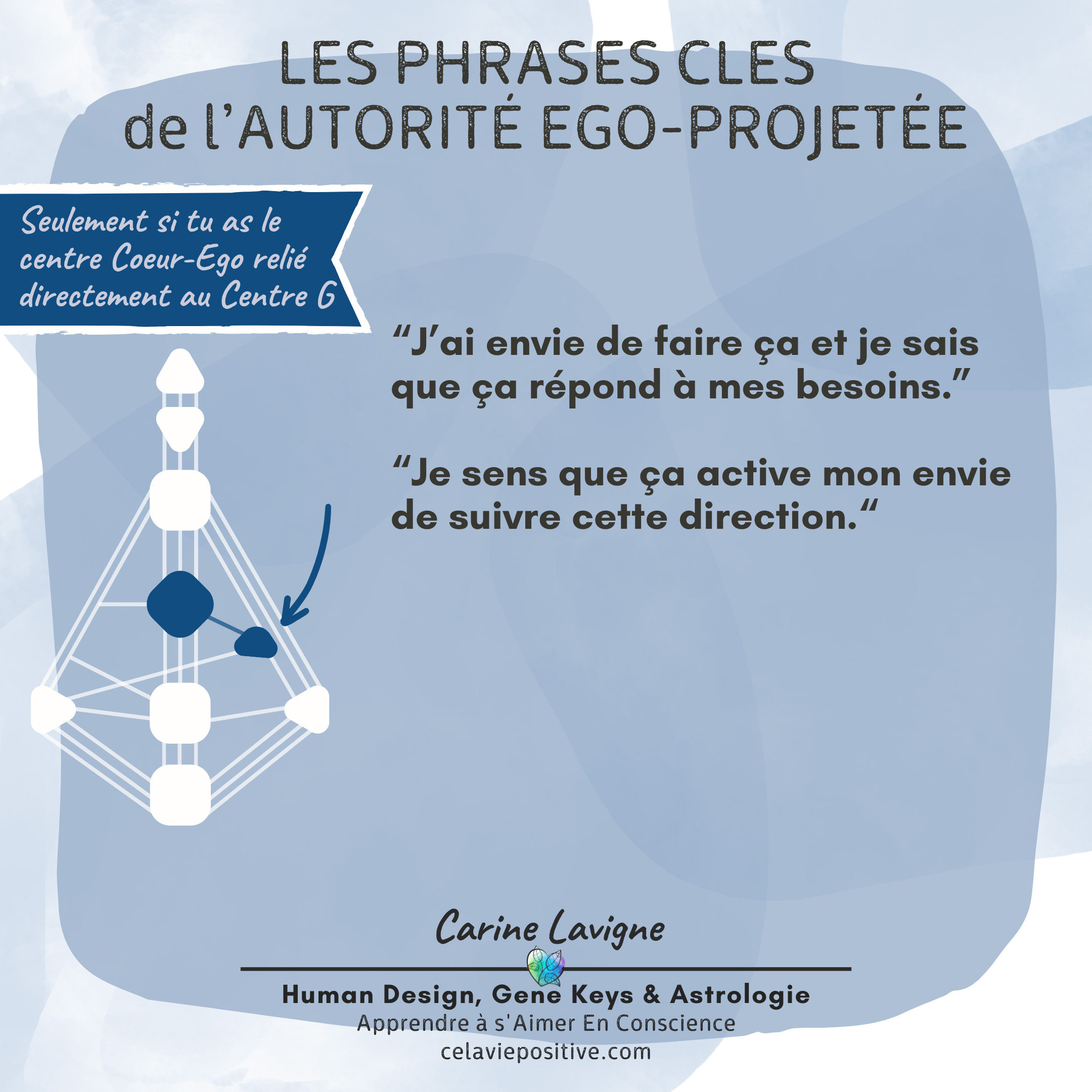 L’autorité ego-projetée est rare et subtile. Elle s’appuie sur votre capacité à exprimer ce que vous voulez vraiment, depuis le centre de votre identité (le soi) et la force de votre cœur (l’ego). Ici, pas de sensation physique à interpréter, ni d’intuition à capter — mais une vérité qui se révèle dans l’expression de qui vous êtes et de ce que vous désirez profondément.